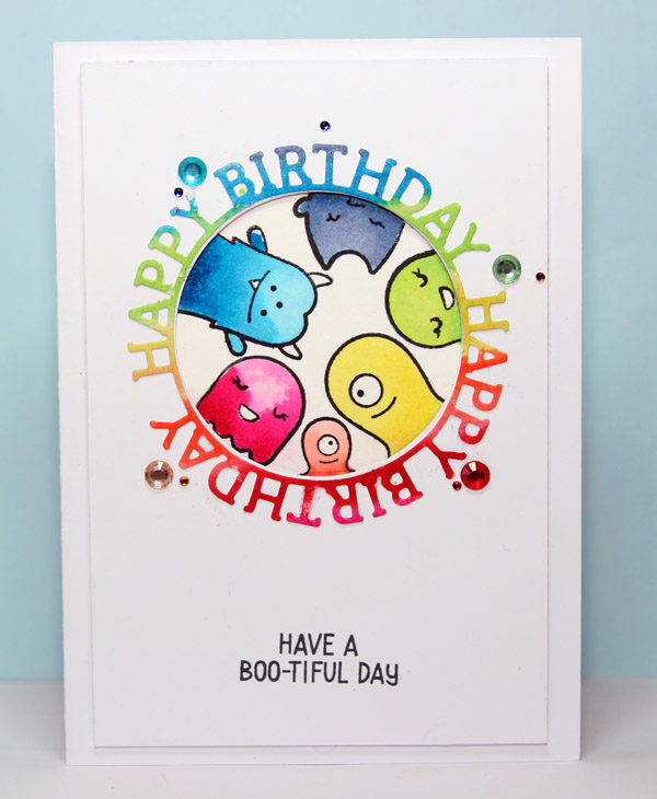1. How cute is this? And I like that you mess up cards too!! I am always adding something to help "fix" a mistake!! I love those little monsters in the rainbow of colors and how you created that fun sentiment. Adorable card!!