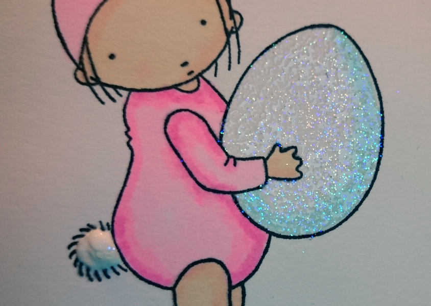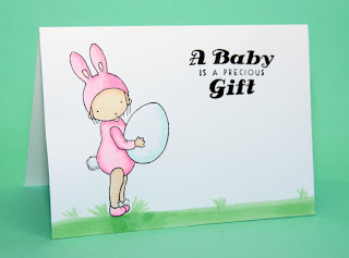 I colored the bunny girl pink so it could be a baby girl card, I just thought a little girl would dress up in a pink costume...