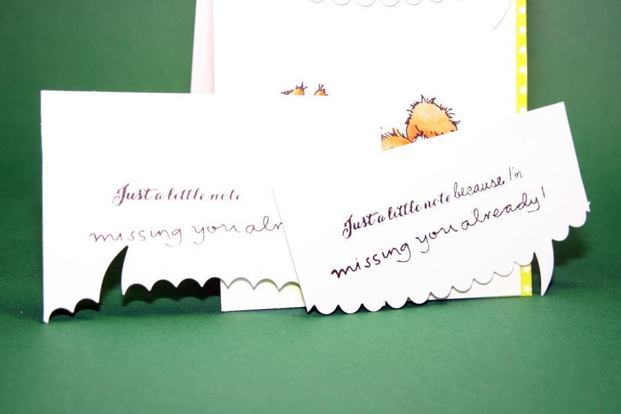 If you look at the second photo you can see the slant :-(, So gave up on that idea and went for the sentiment from Stinkin' cute only. I used Versafine to stamp it and then diecut the big word pop scalloped speech bubble from Memory box (my Diecember gift). Popped the speech bubble up with foam tape.