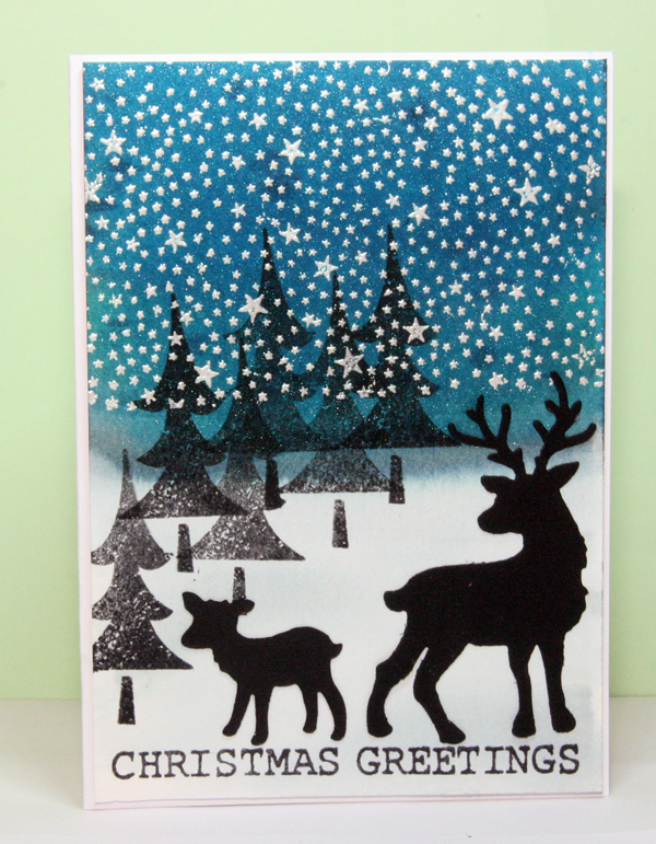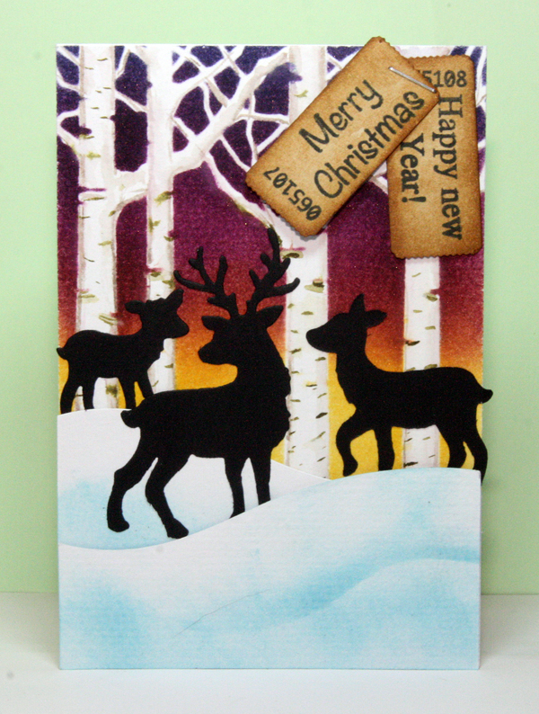 The deer are diecuts from black cardstock and are from Yvonne creations (the Colourful Christmas series ycd10029)/