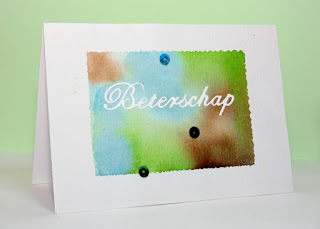 Matching sequins and the coloured panel was made with the stampingblock technique, where you apply inks onto a slick surface (the stampingblock, but I;ve also used rulers, cd cases, tiles etc anything non porous) then I sprayed the ink with Perfect peral mist to give it some shimmer. laid the watercolour paper on top and carefully rubbed the back of the watercolor paper to give the inks a change to soak into the paper. then quickly lift the paper and let it dry,